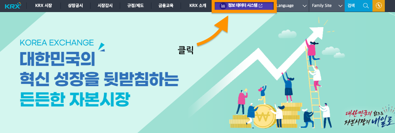 검색창에서 '한국거래소' 검색 후 아래의 캡쳐 순서대로 확인 해봅니다.