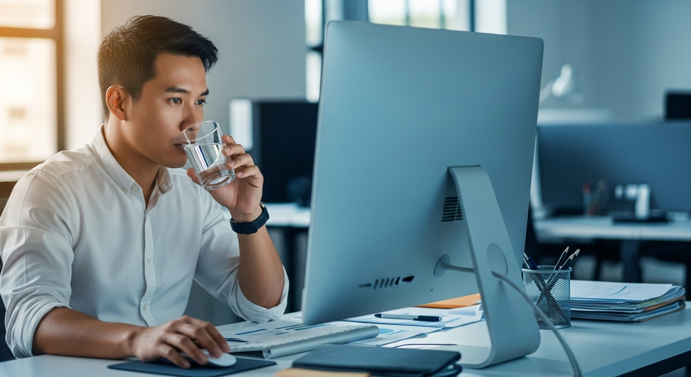 실제 연구에서는 물 한 잔만 마셔도 작업 수행 속도가 즉각 향상되고 스트레스 지수가 감소한다는 결과도 보고된 바 있습니다.